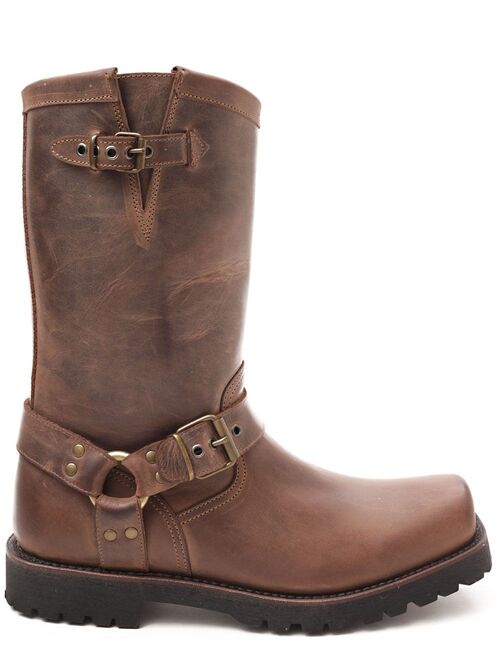 ENGINEER BOOTS icono de la moda, forma de expresión y declaración de estilo. Bota de estilo motorista, también llamada bota de trabajo por su resistencia y seguridad. Piso de montaña, suela completa de goma con huella resistente y antideslizante. Cuero vacuno flor tratado con aceites, forro de piel, plantilla acolchada, correas para adaptar la bota a tus medidas. Si eres un motorista, te va el custom y quieres marcar tu propio estilo, las botas Engineer son una opción perfecta. Este modelo te proporciona protección y seguridad así como resistencia y confort.