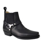 • Abrazaderas en piel que ayudan a ponerse la bota.